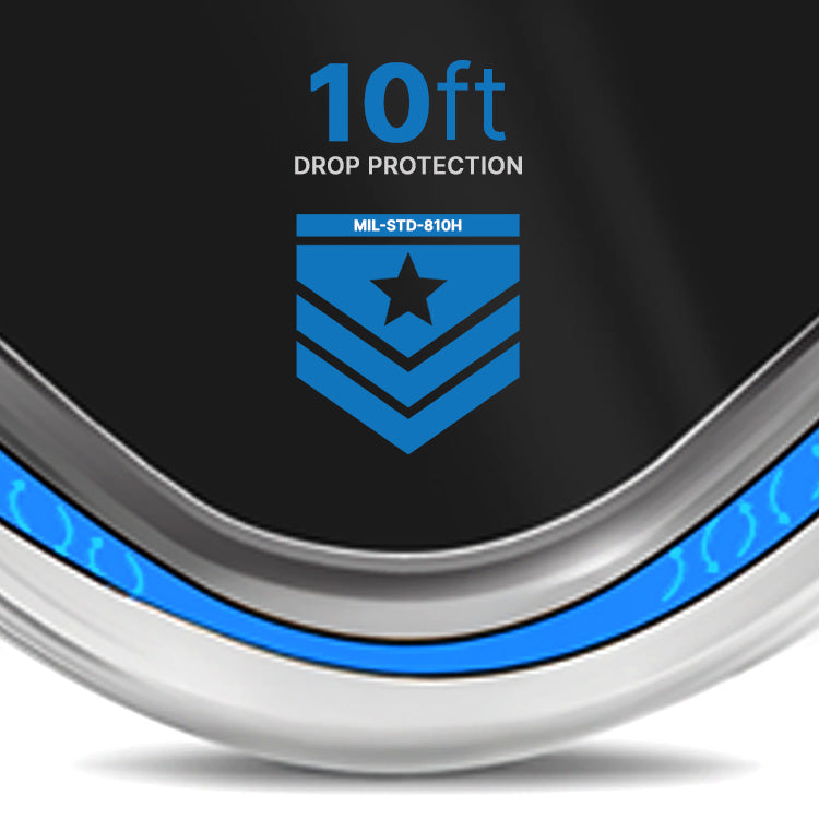 Certified up to 10ft drop protection on hard surfaces. Because things happen.