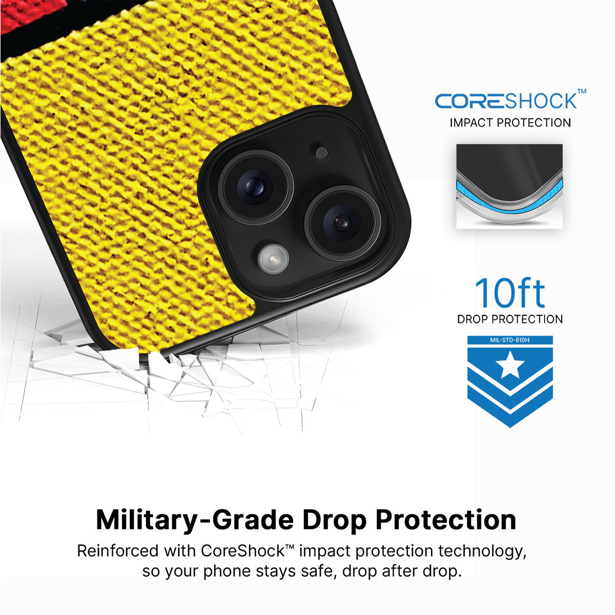 Our CoreShock™ system is engineered for real-world drops, delivering up to 10feet of impact protection without bulk. Built for durability and everyday confidence, it helps absorb and disperse shock, so your phone stays safe when life slips.