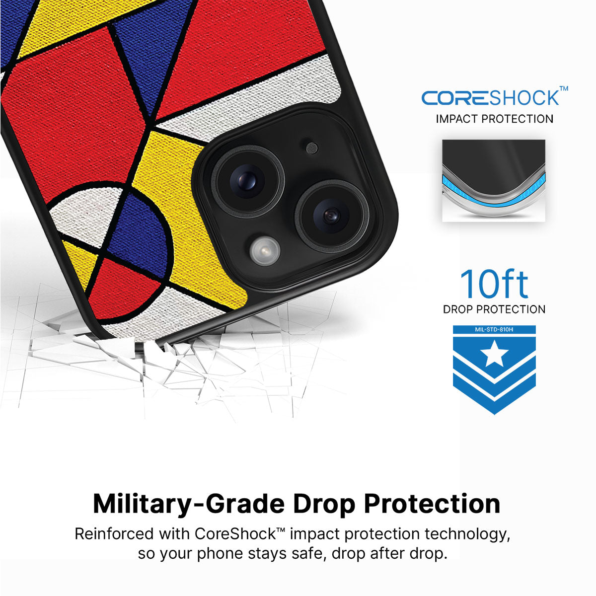 Our CoreShock™ system is engineered for real-world drops, delivering up to 10feet of impact protection without bulk. Built for durability and everyday confidence, it helps absorb and disperse shock, so your phone stays safe when life slips.