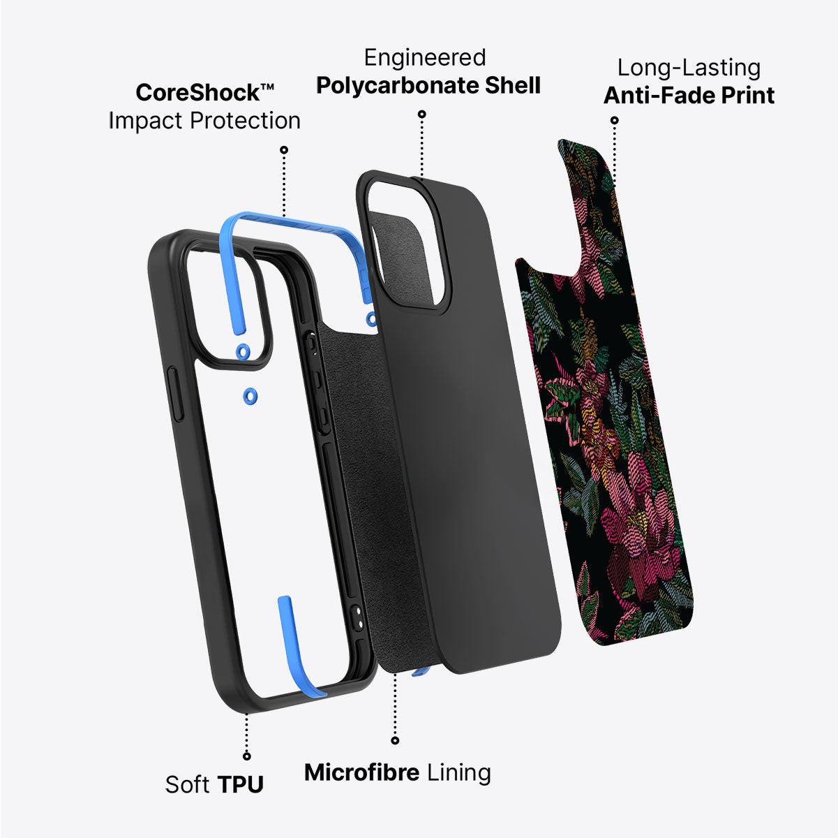 A considered construction brings comfort and strength together. Soft, grippy sides meet a rigid polycarbonate shell for confident everyday carry. Raised edges and CoreShock™ impact zones help guard your screen and camera, while long-lasting, industrial standard printing keeps the artwork vivid. Form and function, perfectly in sync.